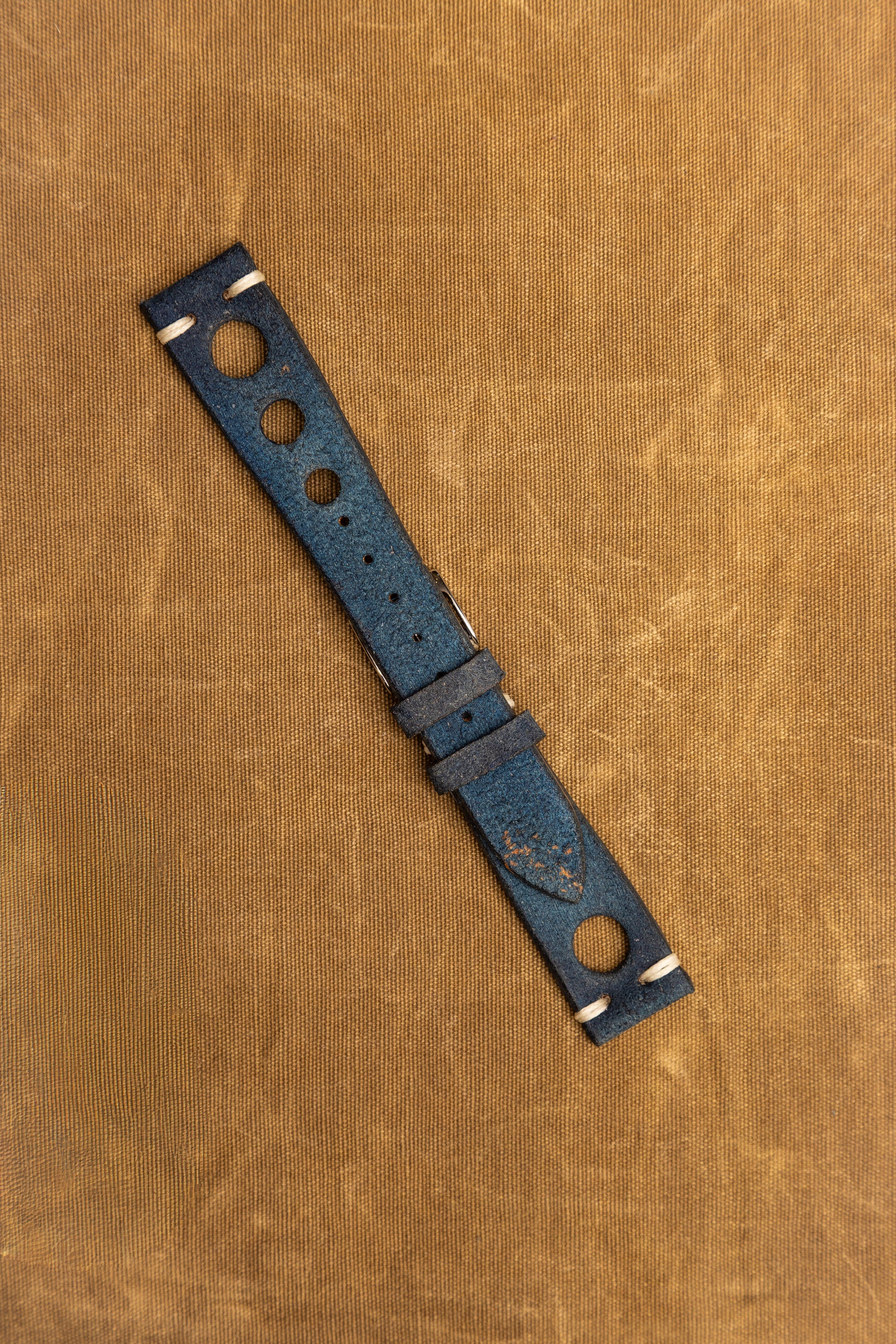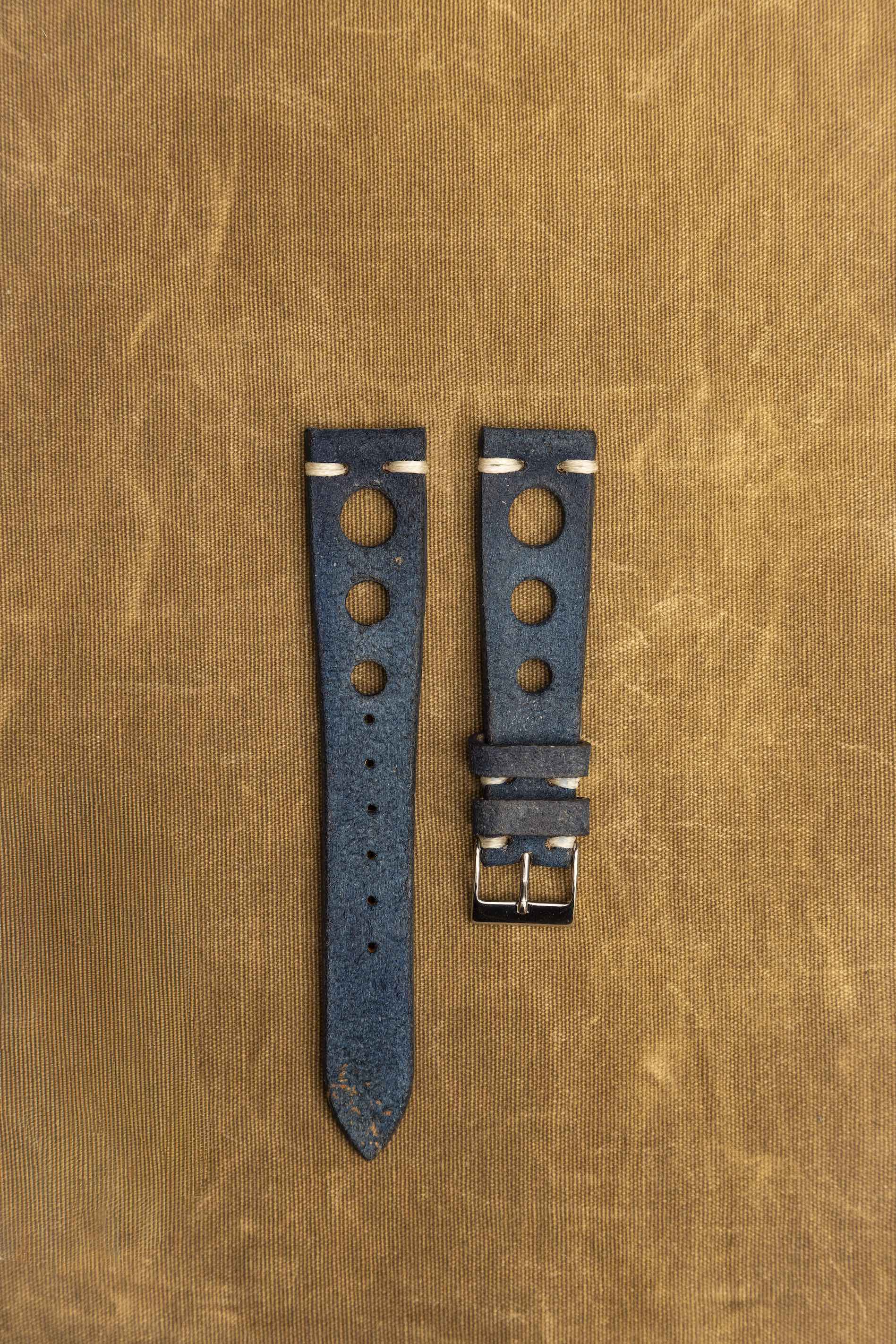 Cinturino "Racing" in Crosta tinta a mano - Blue